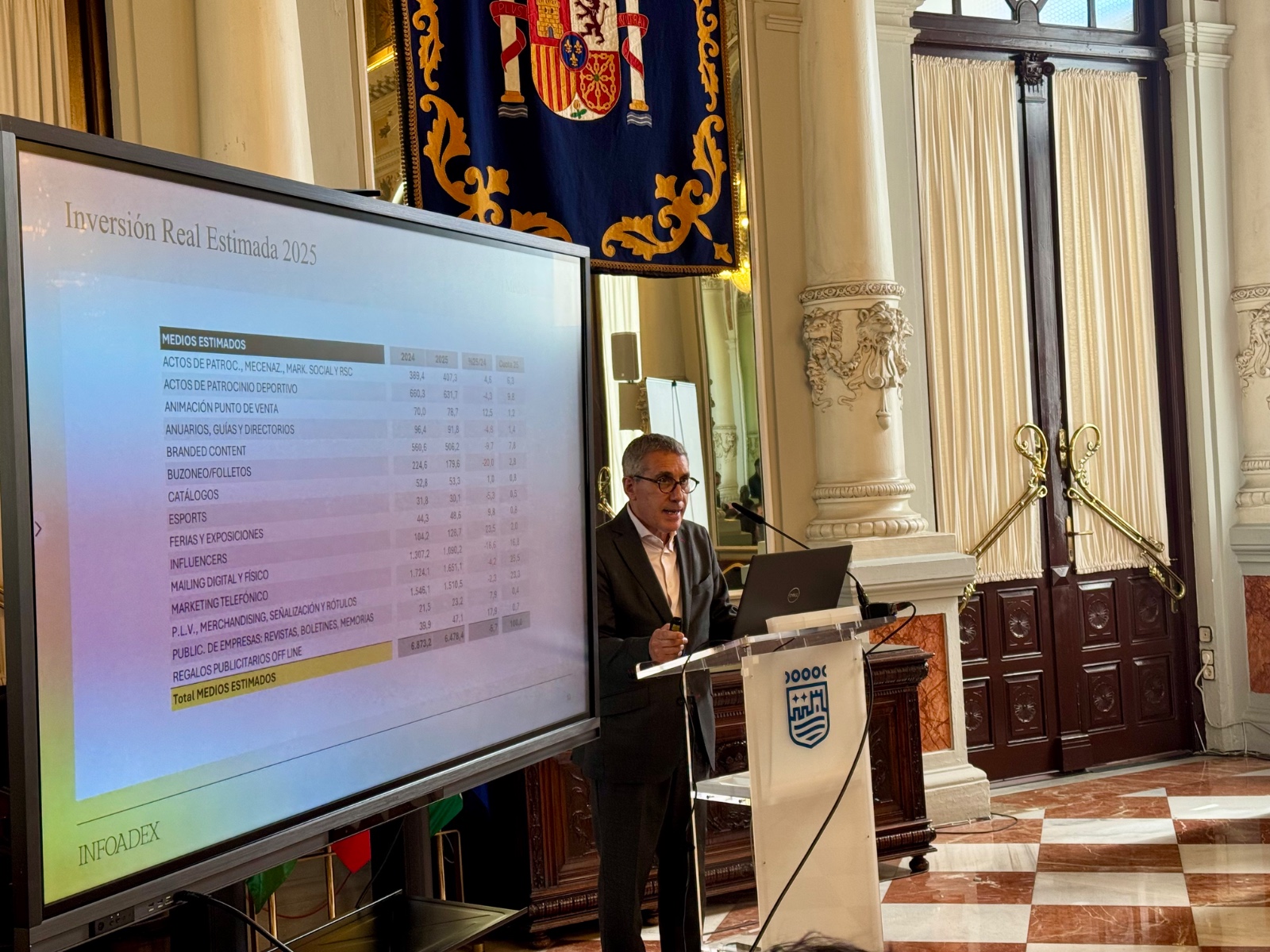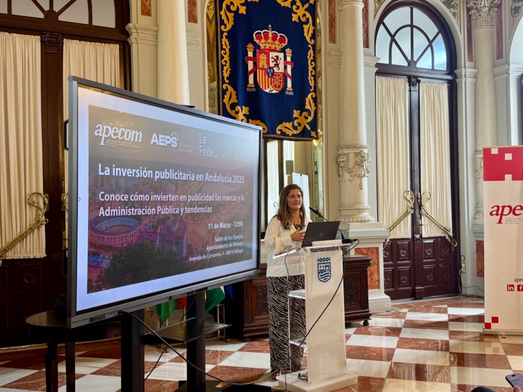 Málaga, 12 de marzo de 2026.- Profesionales de la comunicación, el marketing y la publicidad se han dado cita en el Ayuntamiento de Málaga para conocer las conclusiones del informe sobre inversión publicitaria en Andalucía 2025. Este estudio ha sido presentado por Infoadex en una jornada sectorial organizada por la Asociación de Publicistas, Empresas de Publicidad y Marketing de Málaga (Apecom), la FEDE y la Asociación de Empresas de la Publicidad de Sevilla (AEPS), con la colaboración del consistorio malagueño.